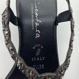 Contesa Italian Jeweled Wedge Sandals Size 7,5M Black/Silver Color Made in Italy Pre-owned Great Condition