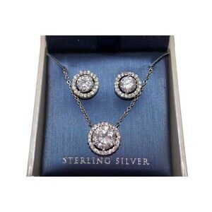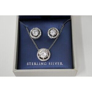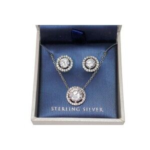 Up for sale is a beautiful Contessa Di Capri Sterling Silver Cubic Zirconia Earrings & Necklace Set. The necklace measures approx. 15" long with a CZ design that measures approx. .5" wide. The earrings are approx. .5" wide.