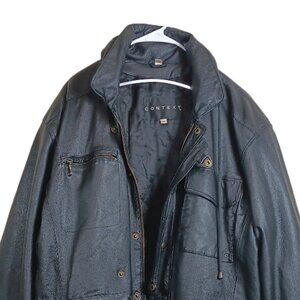 Context Leather Jacket Womens XL Black Hooded Drawstring Cargo Utility Parka