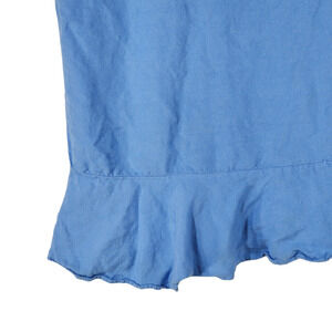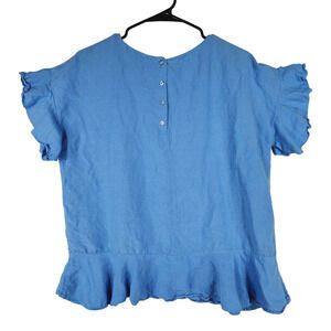 Context Linen Peplum Top Blouse sz M Women Blue Flutter Sleeves Cottage Coastal