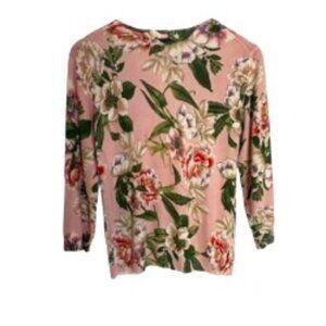 Context Pink Floral Zipper Front Sweater Medium