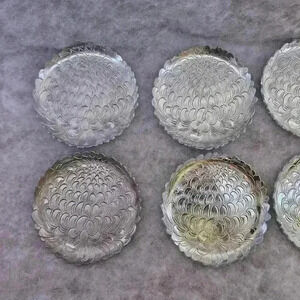 This set of vintage coasters from Continental Silver Co. comes with a stylish aluminum caddy for easy storage and display. The coasters are perfect for entertaining guests and protecting your furniture. Made in the United States, these coasters are a great addition to any collection.