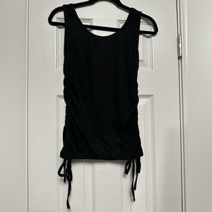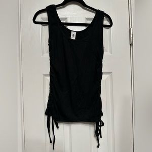 A luxe spin on your basic tank, the Contour Drawstring Knit Tank in black is detailed with a scooped neckline and