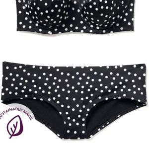 82 NYLON, 18 SPANDEX, LINING 100 POLYESTER polka dot