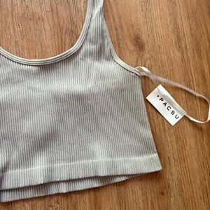 Women’s casual tank top from PACSUN, brand Contour! Lightweight and stretchy material great for any outfit or layering. Halter neck straps, cropped length, fitted, ribbed fabric. New with tags still attached, perfect condition!