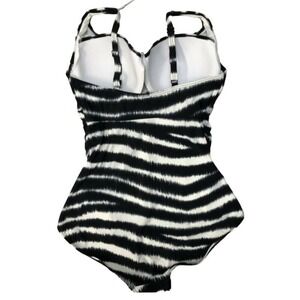 Contours Coco Reef Striped Black & White One Piece Swimsuit Twist 8 32D New