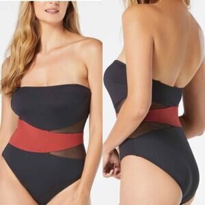 Take your swim style to the next level with Coco Contours Level Mesh Bandeau Bra Sized Underwire One Piece Swimsuit! Our patented Shapemaker® lining holds in your core, smooths your back, and shapes and lifts your butt while our underwire bra supports your chest. This ultra stylish one piece features mesh inserts, colorblocking, underwire, removable soft cups, and adjustable removable straps so all your swimsuit needs are met while staying fashionable.