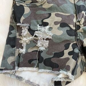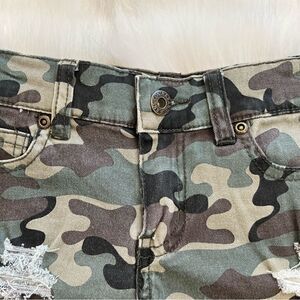 Dual front pockets, belt loop, zipper and button closure, dual back pockets, distressed throughout, stretchy