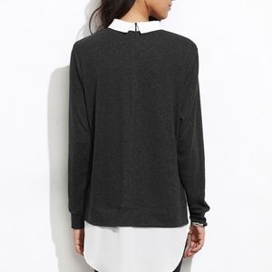 Contrast Collar Curved Hem 2-in-1 Sweater