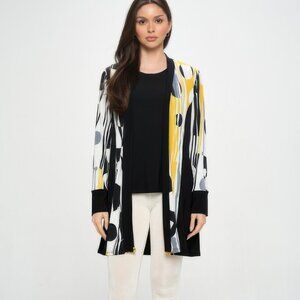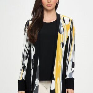 This contrast jacket adds striking definition to your look with its bold black-and-print design. Featuring long sleeves and an open front, it's crafted from soft ITY fabric that provides gentle structure with a comfortable stretch. A refined layer to elevate everyday ensembles. Made in the USA.