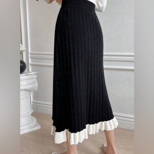 Contrast hem pleated sweater knit midi skirt minimalist black white