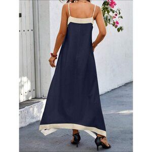 Contrast stripe cami strap maxi dress minimalist boho preppy cream black