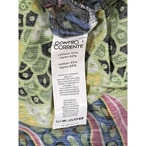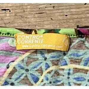 Introducing the Contro Corrente Women's Sleeveless Dress in a colorful and vibrant pattern. This knee-length dress features a round neckline and a pullover closure, perfect for any occasion whether it's for travel, party/cocktail, or casual wear. It is made with a blend of Rayon and Cotton material, making it comfortable and stretchable with a size type of Regular and a size of One Size. This dress is perfect for women who love maxi style dresses with a Colorblock pattern that gives it a unique and stylish look. The dress is brand new without tags.
