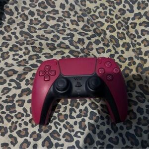 Sleek crimson and black wireless gaming controller. Ergonomic design with responsive analog sticks and buttons. Bold color combo for standout gameplay.