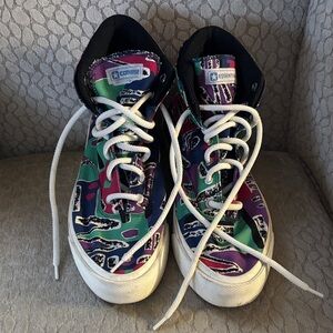 Classic black Converse sneakers. Sleek and versatile design. Ideal for everyday wear. These can be unisex. Brand new never worn. It comes with the box but the box is damaged but not the shoes. I am open to offers & bundles!! Happy poshing. These are a size 8 in men’s &/or 10 in women’s.