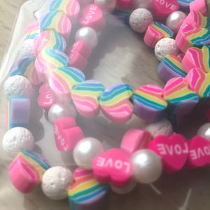 -Materials: Polymer clay beads(multicolored), faux pearl beads, lava beads(white)