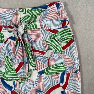 Conversations Anthropologie Skirt Womens 6 Umbrella Print Buttoned Linen Blend