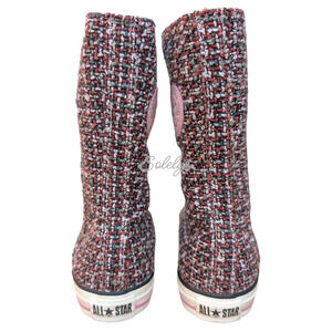 mid 2000s sneakers, extra high chucks, calf high converse, pink tweed boots, rare converse release, vintage style sneakers, fashion week sneakers, statement sneaker boots, streetwear luxe, runway inspired sneakers, high fashion streetwear, limited edition converse, archival converse, tweed high tops, collectible converse shoes, couture inspired footwear