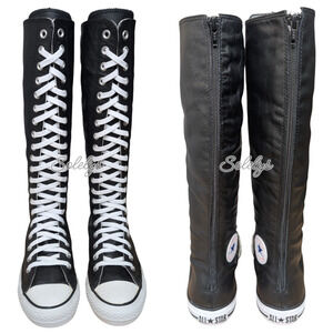 Converse 2010 XXHI Black Leather Lace Up Zip Back Sneaker Boot Womens 6 RARE