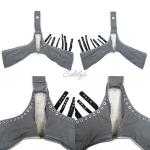 Overall excellent pre owned condition for this style/size with minor flaws/signs of wear. Bottom strap on the right shoe has been repaired (stitched and reinforced with a backing patch). Minor rubber heel plate wear.