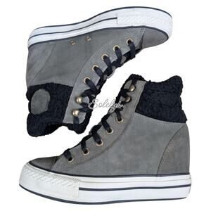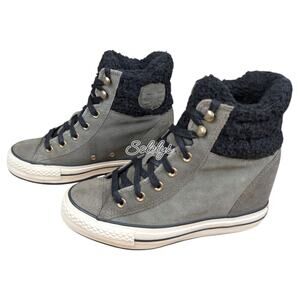 Converse 2014 Platform Plus Sherpa Hidden Wedge Grey Suede Sneaker Boot 7.5