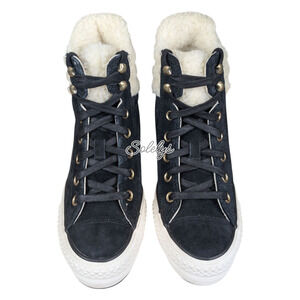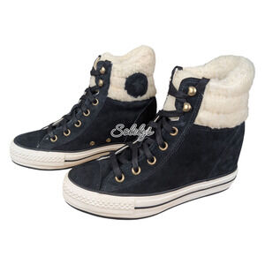Converse 2014 RARE Platform Plus Collar Hidden Wedge Black Suede Sneaker 7.5