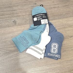 Stylish Converse socks for active wear. Includes blue, white, and teal pairs. Perfect for sports and casual use.