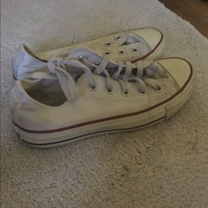 White converse!! Worn yes sorry :( but still super cute and comfy!! Just a wash and they'll be like new ! (: