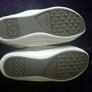 Off white-cream in color Converse sneaker. Worn one time-with no signs of wear. Super cute and breathable shoes.