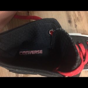 Ladies Black hi-tops Converse with red laces
