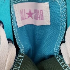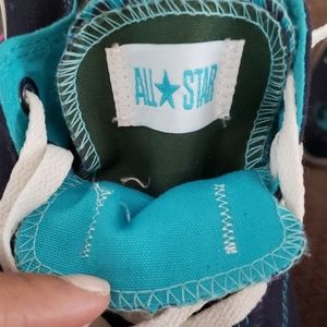 Dark blue with accent colors turquoise, purple, olive green and lavender