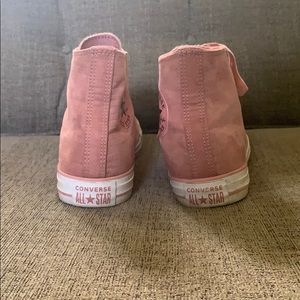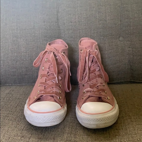 They are pink and very comfortable!! They have only been worn twice and are in very good condition!!