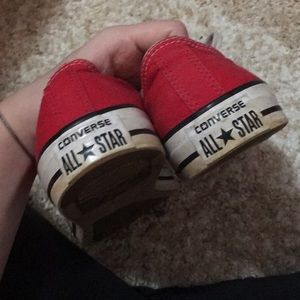 Red low top converse. Good condition just a little dirty. Willing to negotiate price due to them not being cleaned. I’m a full time mom of 3
