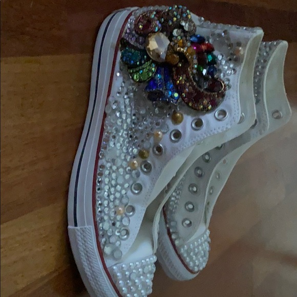 Designed white converses 🛍New white shoe strings can be provided