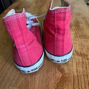 Red Converse. Women’s size 10. Men’s size 8 1/2. Definitely worn but really good condition