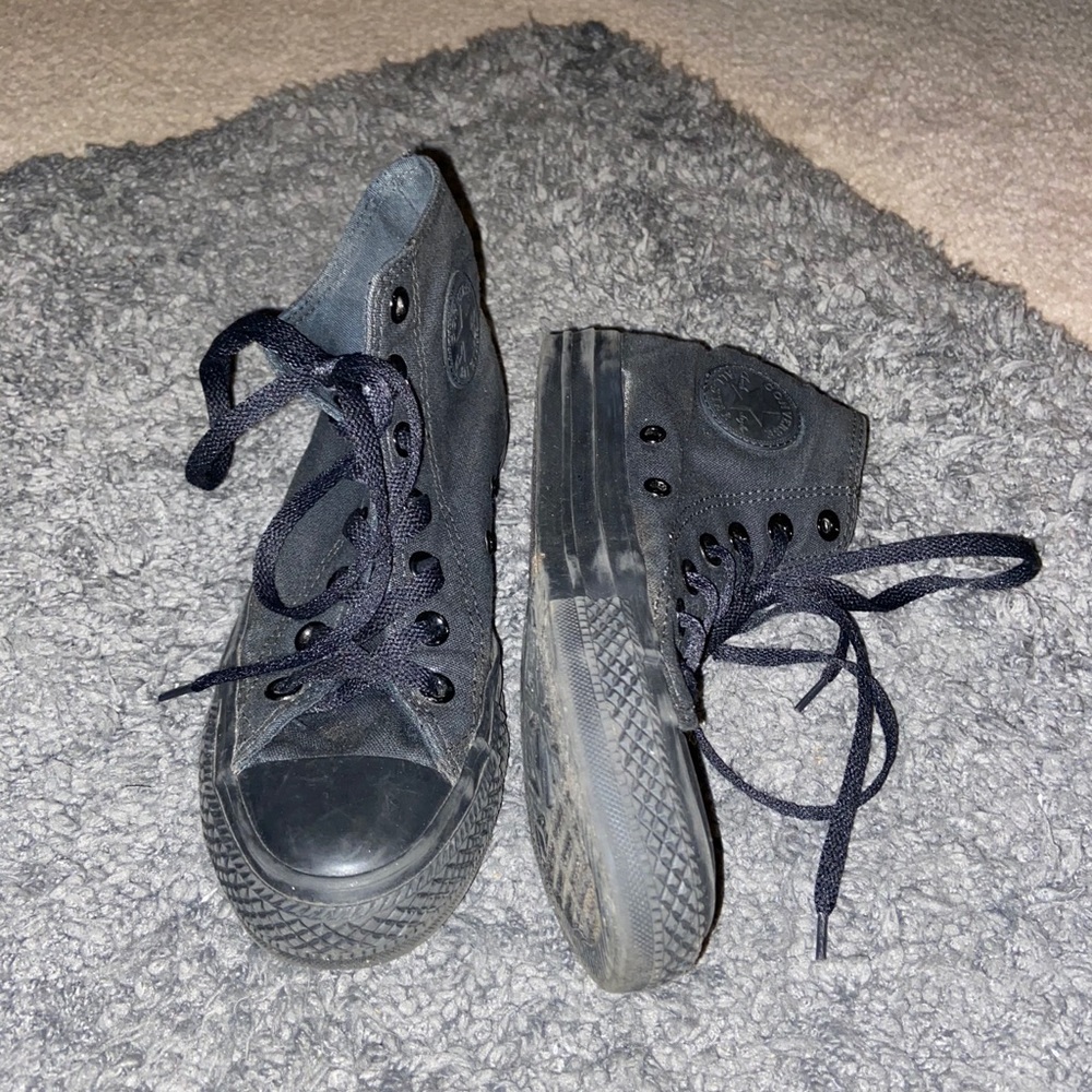 All black converse. Size 6 women’s, which is a size 4 men’s. These could be cleaned up to look almost brand new!