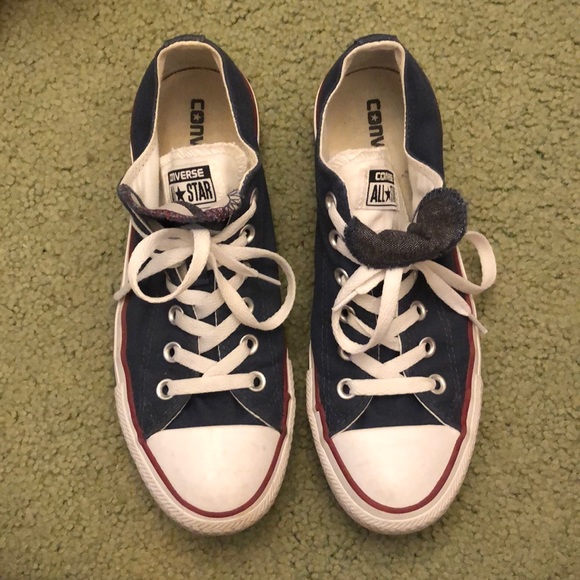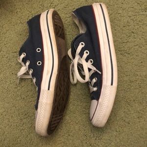 Blue converse with a double tongue and red detailing on the sides. Good condition, but could use a little cleaning up on the sides. Super cute for all patriotic holidays! Size 8 women’s. Please ask all questions before purchase