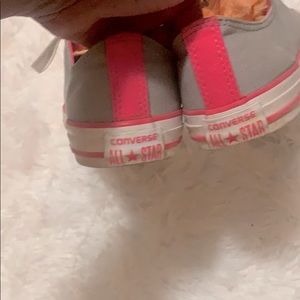 GREAT CONDITION CONVERSE!! Grey and Pink Size 5. Double tongue pink and yellow!! Just grew out of them!