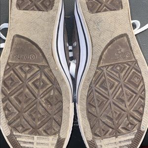 Grey converse men’s size 6 women’s size 8. Has a small bleach spot as pictured