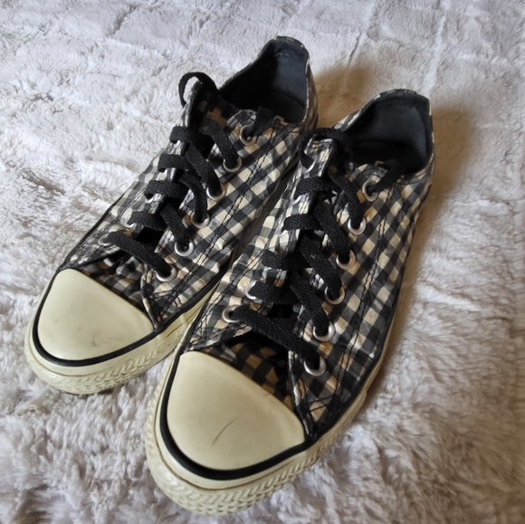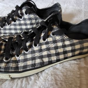 Super cute black and white gingham print. Worn but still have a lot of life.
