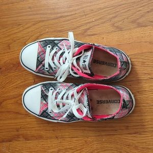 low top plaid converse. these shoes are in used condition but still have a lot of life on them ❤️ the outside is in great condition but the inside could use a good cleaning but still in good condition.