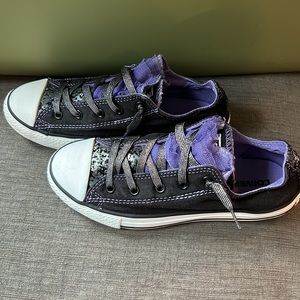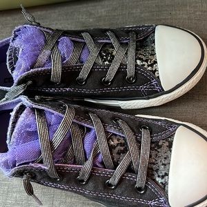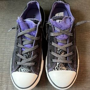 Girls converse slip ons in excellent condition with purple tulle Box 2 C