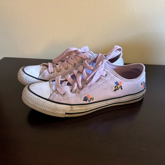 Purple floral low top converse. Size 8. Good condition.
