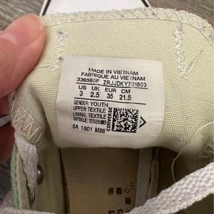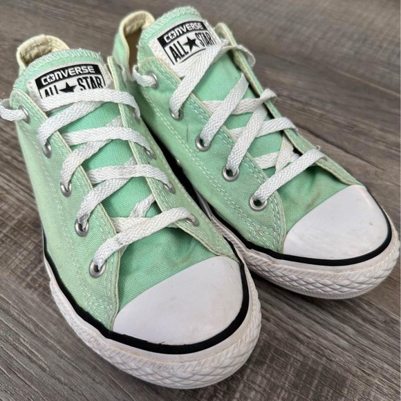 Mint green converse. Bought these second hand but they didn’t end up fitting. Says a youth size 3 which I think would fit a size 5 in women’s