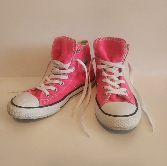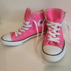 Converse high top, size 3 youth, bright pink, great condition, minimal wear
