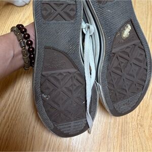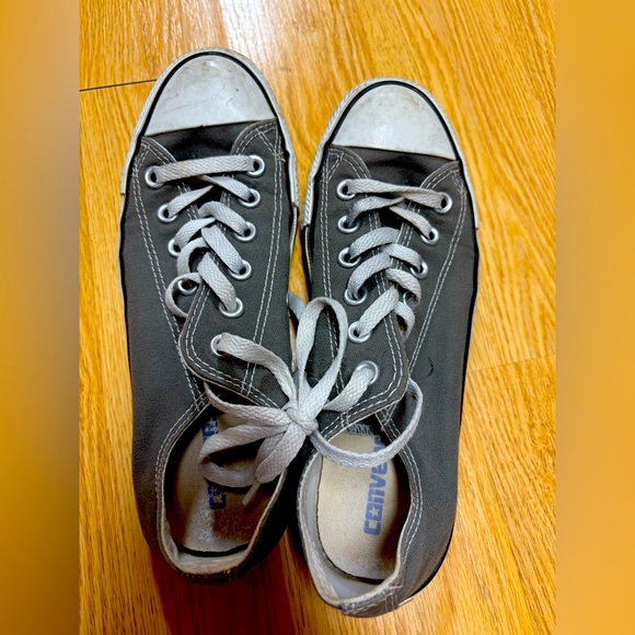 Grey shoes with medium wear , all star is not faded which is good . I like them but ready for something new . Thanks !