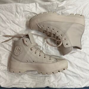 This lugged up Chuck rocks durable leather uppers with a 2" platform and chunky lug outsole for superior traction and stability