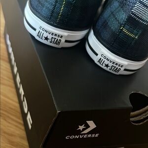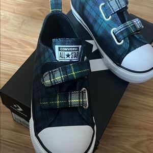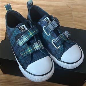 Toddler size 10 converse Boys or unisex Blue/green plaid New in box