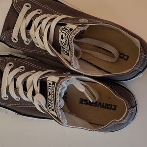 Dark gray converse childs big kids size 7 in good used condition. can be wiped off. easy to get clean. comes from a smoke free home.