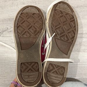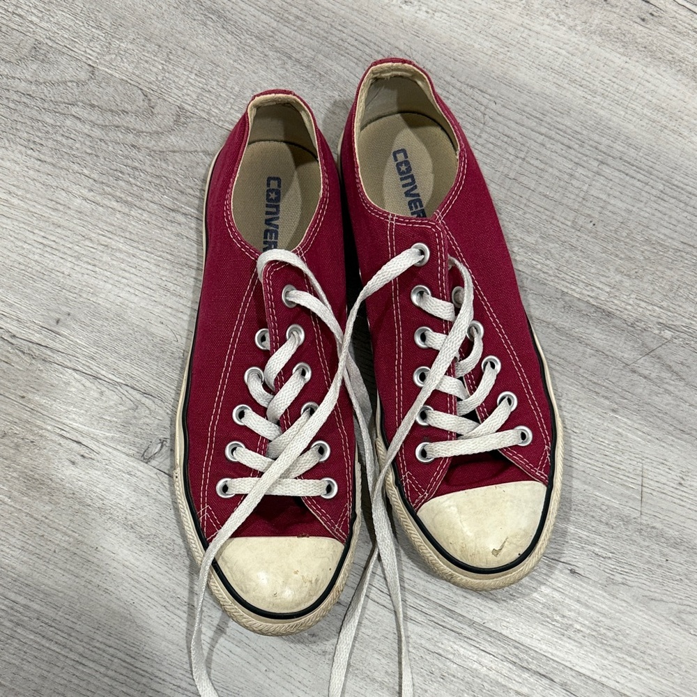 Classic Converse sneakers in vibrant red. Durable canvas material. Iconic design with white laces.
